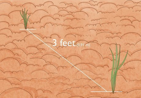 Space your grass plants with enough room to allow growth. As a general rule, space plants at a distance that equals their tallest height at maturity. This will ensure that they can grow without being hindered by other plants. For instance, landscape grasses that can grow to 3 feet (0.91 m) tall should be planted 3 feet (0.91 m) apart. Landscape grass plants can be planted in spring, summer, or fall.