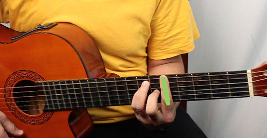 Practice barre chords. The barre chords are more technically complex than the open D major, and they require much more finger strength. Work on pressing your index finger against the fretboard. Make sure that you can hold down all of the strings firmly enough that you create a crisp, clear-sounding chord. If the chord comes out twangy or muted, then you are not holding the strings down firmly enough. Pluck each string individually while you hold the barre chord shape. If a particular note doesn't sound clear, shift your finger around until you can play it crisply. Make sure that your fingers are as centered as possible between the frets, and that none of your fingers are accidentally muting other strings. If you move these barre chord shapes up and down the fretboard, you can play any chord. Two frets higher, for instance, makes a C major chord. Two steps lower makes an E major chord.