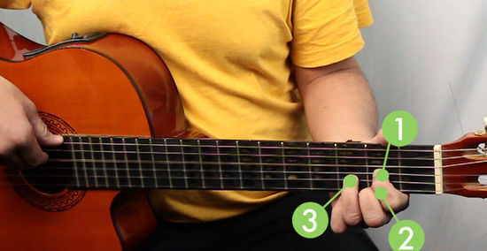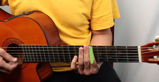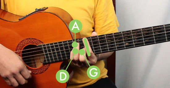Play the chord. Once your fingers are in place, use your right hand to strum downward from the D (4th) string. Only play the highest four strings: D, G, B, and high E. Do not touch the low E or the A string. Keep practicing the chord until you can generate a clear, crisp-sounding chord.