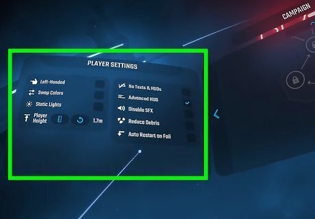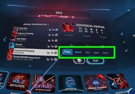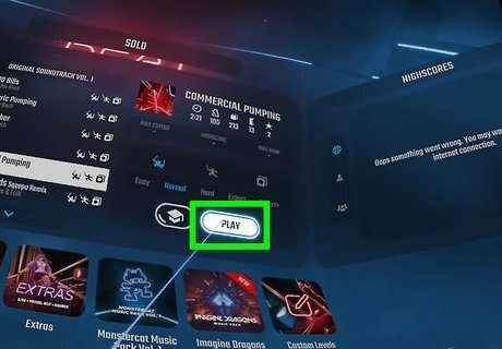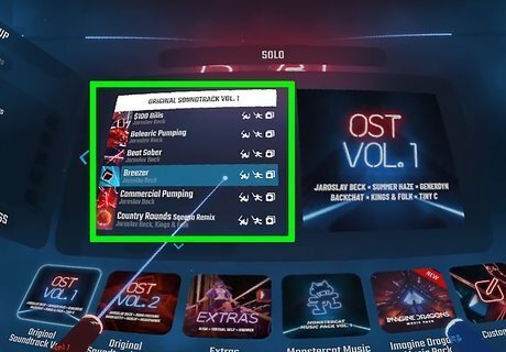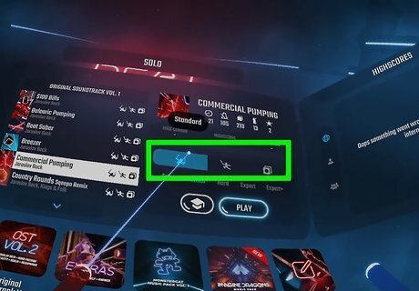 Choose a game mode. There are different levels, as well as single player mode, party mode, and arcade mode. Beat Saber has levels that consist of challenges you have to complete to level up. Single player mode allows you to play alone. Party mode allows you to trade off the VR headset every so often.