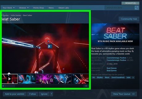 Get the game from SteamVR or Oculus Store. This is one of the most popular games in these stores, and should be close to the top of the list. You can search for it on your PC, or you can select it from the top of the list in the respective store. SteamVR games can be played on any VR headset; Oculus games only work on the Oculus headsets.
