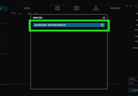Choose the level mode. You can do normal, one saber, and no arrows. Normal mode will run the beat map with blocks you need to hit in the direction of the arrows. One saber mode gives you only one saber to slash blocks. There will not be two different colors in this case. No arrows will run the beat map but letting you slash the blocks in any direction.