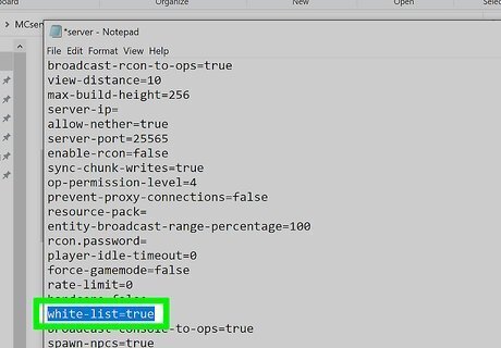 Find the .white-list=false. Change this to white-list=true. This will enable the white-list which is the list of approved users. Anyone else will not be able to connect to your server, making it private for you and your friends. You can make other changes to the game's settings here, but for now save and close the file.