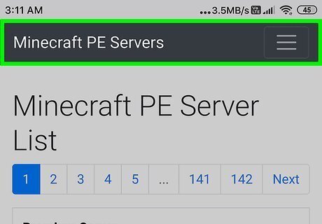 Open the web browser on your device. You can play Minecraft with other people by connecting to Minecraft servers through the app. To find these servers, you'll need to use your web browser app. These servers run all kinds of different game types and modes, making for a unique experience every time. There are several websites that list a bunch of popular servers, including: Mineplex In PvP Lifeboat