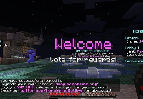 Start playing on the server. Most servers will spawn you in a Welcome area. Here, you may find rules and instructions for using the server, as well as information on how to join the rest of the players. When you’re playing on a public server, make sure that you don't destroy anyone's creations. Not only is this considered rude behavior, it will likely get you banned from most peaceful servers.