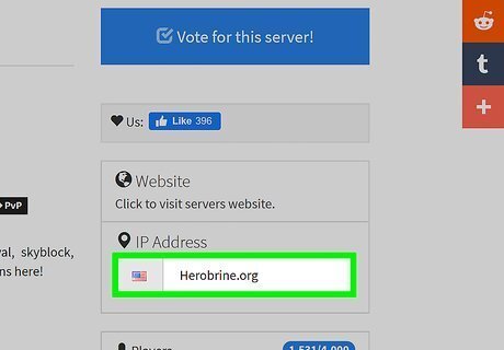 Look for a server IP address. It will look something like mc.wubcraft.com or 148.148.148.148. It also may have a port on the end displayed as :25565. You have to know the server’s IP address in order to connect to it. Think of an IP address like your home address. If you don’t know someone’s home address, you can’t send them a letter. It's the same with computers: you won't be able to connect to a server unless you know the computer's address.