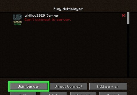 Tap the newly-added server to connect to it. The game will attempt to connect to the server. Once you are connected, you will be spawned in the server's Welcome area. If you can't connect, there are a few different factors that may be causing the problem. You won't be able to connect if the server is full, and you won't receive a message informing you. If the server is offline, you won't be able to connect. You also won't be able to connect if you have the same name as another player that is already connected. You can change your in-game name from the Settings menu on the main Minecraft menu.