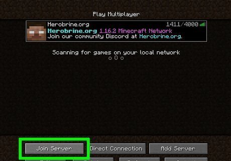 Find a server to play on. In order to connect to multiplayer games in Minecraft, you'll need to find a server that you want to connect to. You can't browse servers from within Minecraft; instead, you'll be searching for servers using your web browser. There are several sites that specialize in server listings, and many popular servers have their own websites. Some of the biggest server listing sites include: MinecraftServers.org MinecraftForum.net Server section PlanetMinecraft.com Server section