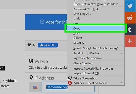 Copy the server IP address. To connect to a server, you'll need to type in the server's IP address. You can find this IP address in the server listing. The IP will be groups of letters and/or numbers separated by periods. Highlight the address and copy it to your clipboard.