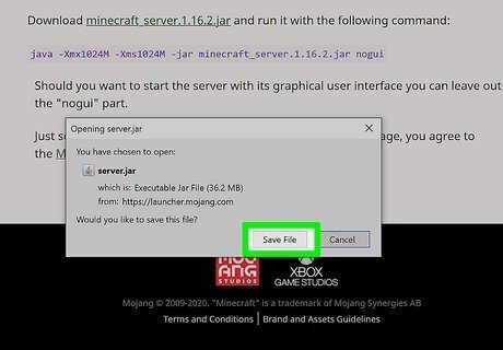 Download the Minecraft server files on the computer running the server. Creating a Minecraft server will give you a persistent world that you and your friends can play on at any time. The server will be private so that only your friends can join, and you can even install mods. The Minecraft server files are free and can be downloaded from minecraft.net/download. Download minecraft_server.X.X.X.exe. This section will deal with creating a quick-setup Windows server. For instructions on creating a server in Linux or OS X, or for creating a server in Windows manually, click here.