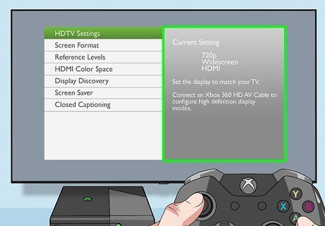 Make sure you're playing on an HDTV. In order to use the splitscreen feature, you'll need to be playing in at least 720p resolution, which requires an HDTV and an HDMI or component cable. Most newer TVs are HDTV and have an HDMI cable, so if you can’t see anything different, you’re probably good to go. If your TV says EDTV, then it’s not an HDTV. Make sure you’re using 720p resolution by going to Settings > Systems > Console Settings > Display.