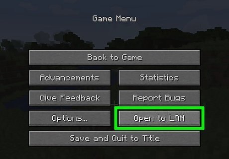 Press the Escape key to open the Pause menu. Once the world has loaded, you can open the game up to anyone on your local network through the Pause menu. Scroll down until you see the “Open to LAN” option.