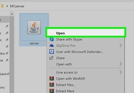 Create a folder for your server. The Minecraft server will install all of its files into whatever folder it is run from. Create a folder on your desktop or other easy-to-access location and name it "Minecraft Server" or something similar. Copy the minecraft_server.X.X.X.exe file into this folder.