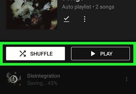 Tap a song, Play, or Shuffle. To play a single song, simply tap the song in the list of songs in the album, playlist, or downloaded songs. To play all the songs in an album or playlist in order, tap the button that says "Play" at the top of the song list. To play the songs in random order, tap the button that says "Shuffle" at the top of the list of songs.