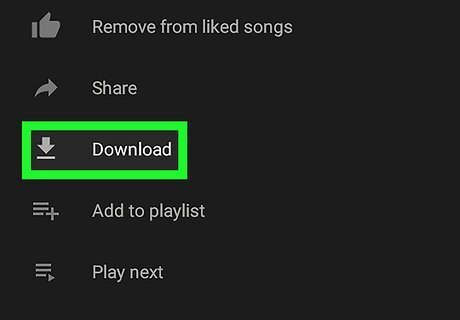 Tap Android 7 Download Download. It's in the pop-up menu at the bottom of the screen. It's next to an icon with an arrow point down and a bar underneath it. This downloads the song so that it can be played offline.