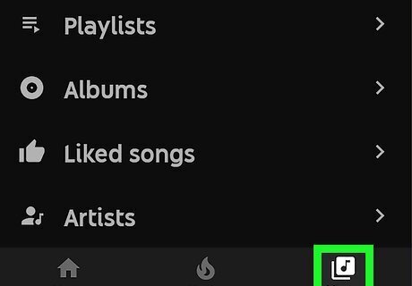 Tap the Library tab. The Library tab is the icon that resembles a music not on a stack of papers. It's in the lower-right corner of the YouTube Music app. This displays your library.