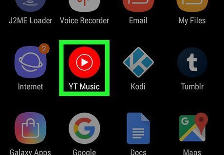 Open YouTube Music. YouTube Music has an icon with a red circle with a white triangle inside of a smaller circle. You can open YouTube Music by tapping the icon on your Homescreen or Apps drawer.