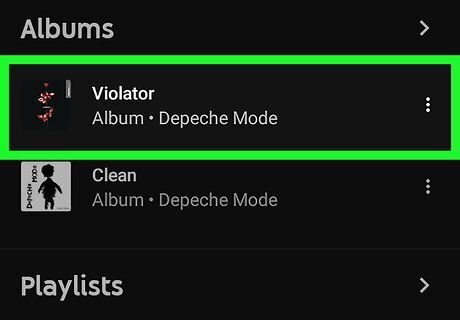 Tap an album or playlists. When you see an album or playlists you want to download, tap it to display all the songs in that list.
