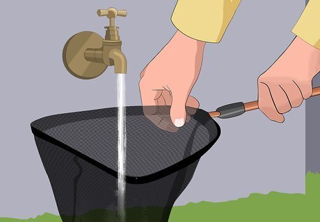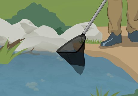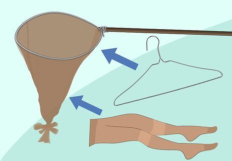 Make a simple net if you don’t have one. Bend a wire hanger into a circle. Attach a pair of pantyhose to the hanger with strong tape so that the opening of the pantyhose goes around the hanger frame. Tie the legs into a knot and cut them off below the knot. Attach a long pole to the hook of the hanger with strong tape. It may look a little silly, but it's a simple and effective net if you need one!