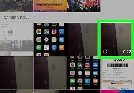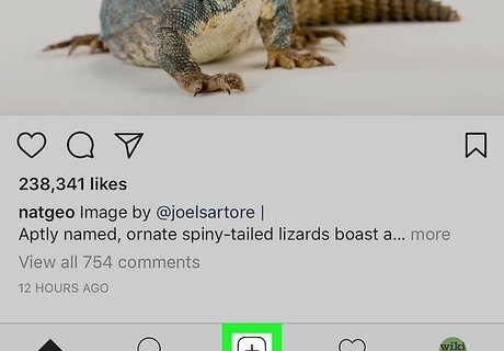 Tap the Post icon. The Post icon looks like a plus sign inside a square and is in the middle bottom of your screen. This opens your Photo Library. If you haven't previously given Instagram access to your Photo Library, the app prompts you to do so here. The most recent addition to your Photo Library appears at the top of the screen. Other recent additions appear in smaller sizes at the bottom of your screen. Scroll down to look through your Photo Library in reverse chronological order.
