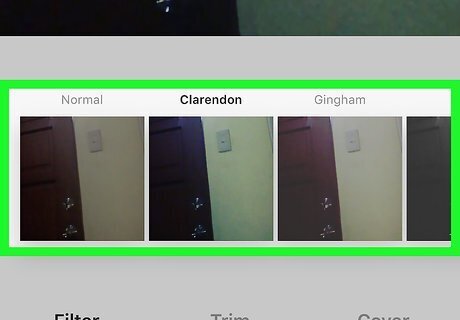 Tap "Next." The "Next" option appears in the upper right corner of your screen. This brings you to the Customize screen. On this screen, you can choose to customize your video with filters, trims and covers. All of these features are optional.