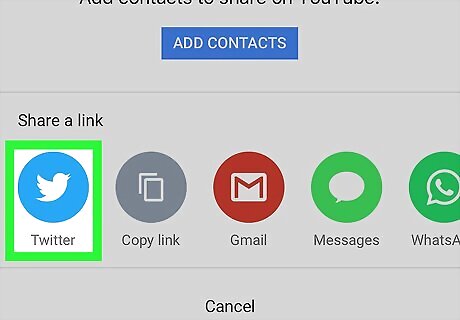 Tap Twitter. It’s the blue icon with a white bird inside. This creates a new tweet containing a link to the video If you’re not signed in to your Twitter account, you’ll be prompted to do so now.