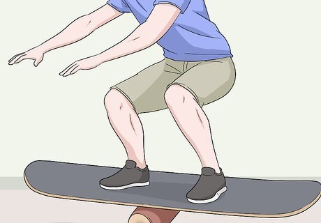 Purchase a surf training balance board to mimic real wakesurfing. There are lots of different balance boards on the market for you to choose from, but the one that mimics wakesurfing the best is a roller board. These boards roll back and forth on a cylinder and are great for practicing your balance. Choose a board that has stoppers on both ends to make it safer and easier to use. If you're nervous about starting out on a roller board, try out a teeter board or wobble board that aren't quite as extreme. It's possible to swap out the cylinder for a cushion when you're using a roller board to make it a little easier.