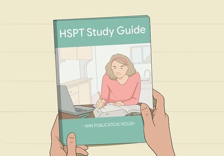 Buy a study guide to get practice materials tailored for the HSPT. While you can find free study materials online, it’s best to use practice tests and guides designed for the HSPT. This will ensure that you’re covering the right content and will help you get a feel for how the questions will be worded. If you can afford it, purchase a study guide to help you prepare for the test.Tip: Peterson’s Master the High School Entrance Exams is a popular study guide for the HSPT. Each year Peterson’s releases an updated edition with new material.