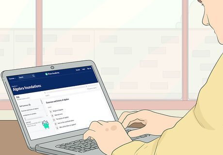Study algebra and geometry using online resources. The math sections will cover concepts typically taught in grades 9 and 10. To help you learn these skills, use online resources like Khan Academy. Watch videos, complete practice questions, and review the reasoning for each answer at the end of your practice tests. Start with algebra because you’ll likely encounter more algebraic questions. Print out practice tests and time yourself for math drills. For instance, you might print off 35 questions and give yourself 30 minutes to complete the drill. This will help you prepare for the timed nature of the test.Variation: If you struggle in math, you may want to hire a tutor to help you improve your skills. Algebra and geometry are both tough subjects, and they may be difficult to master on your own.