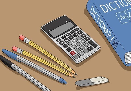 Bring pens, pencils, a calculator, and a dictionary to your exam. Always bring a writing utensil with you, just in case you need it. Additionally, you might be allowed to use a calculator and dictionary during the exam, so bring them with you. You won’t be allowed access to your phone, so you won’t have it during your test. The employer may require you to use their testing materials, but it’s best to be prepared. If you're not sure if a dictionary will be allowed, contact an HR representative from the company where you're applying.