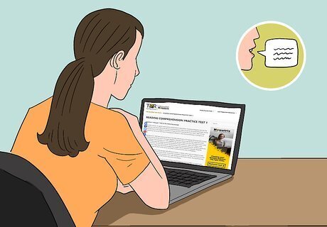 Look online for practice reading passages and test questions you can answer. The verbal section of the aptitude/ability test will likely contain passages for you to read and answer questions about. Look for reading passages online so you can practice these skills. When you check your answers, read the reasoning behind the correct answers to help you better answer questions in the future. In addition to practice materials made for psychometric testing, you might use resources for other standardized texts or for college-level students. For instance, you might try a practice test like this one: https://www.testprepreview.com/modules/reading1.htm. It includes reading passages, questions, and answers with explanations.