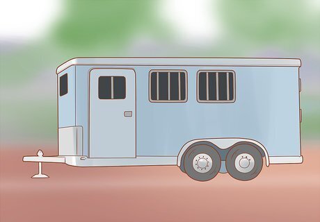 Obtain a horse trailer to transport the horse to and from the stable. A horse trailer is attached to a sturdy truck to safely and comfortably house a horse when bringing it to the vet, to open areas for riding, and other faraway places — you can't exactly keep a horse in the front seat of a truck, after all! You can find horse trailers at farm supply stores and tack stores. Measure your horse to determine the right size trailer to buy, as a trailer that is too small or too large will be uncomfortable for the horse. If your horse is young, you will have to buy one suited for its current size and another one later on when it grows to maturity. If you can't afford a trailer, try to find someone who does that could haul your horse if there was an emergency. Some barns will have one available if you board your horse there.