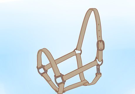 Purchase a leather stable halter and lead. A stable halter is essentially a harness that you put over the horse's head and can be attached to a lead to tie to the stable and keep the horse in place. Leather is the optimal material as it is strong and does not degrade as easily as cotton or rope. You can find horse halters at country stores and farm animal supply stores just about anywhere. You can also look for online horse supply stores for discounts and sales.