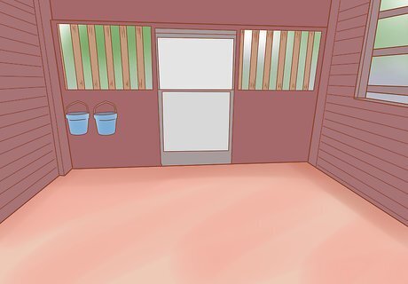 Build a stable that is at least 12 ft (3.7 m) by 12 ft (3.7 m). Make sure the stall is at least 1.5 times the length of the horse in all directions. Make sure the partition is at least 7 ft (2.1 m) high, as horses can kick very high and it may be able to get its legs over the wall if it is desperate enough. Install at least one large window above 7 ft (2.1 m) on the wall to allow natural light into the stable, and install lights along the front of the stable so you can see it when you enter. If your horse will be spending a lot of time in its stable, consider making it much larger to accommodate the animal for long periods of time, even going as far as to make it 3 times the length of the horse in all directions. If you do not have the know-how to build a stable from scratch, opt for a professional stable building company to do the work for you instead. It is more important that the stable is built correctly for your horse's needs than it is to say that you built it yourself. If you have a young, immature horse, build the stable to the average mature size of the breed so you don't have to expand the stable later on.