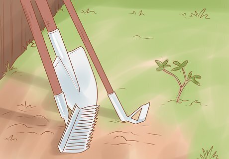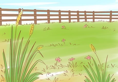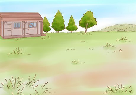 Plan out an open and flat area at least 400 sq ft (37 m) in size. Horses need a lot of room compared to many farm animals and need to run, gallop, and feel free in their space to be happy. Plan out an area near the stable at least 400 sq ft (37 m) in size — although the larger the pasture is, the better suited it will be. It is vital that the ground is completely flat so your horse finds it easy to get around without hurting itself. Fill in holes, flatten molehills, and do what you must to ensure the pasture is as level as possible throughout. A horse can get its hoof stuck in a small hole or could trip unintentionally on a mound of dirt. Trees are usually OK to keep on a pasture, but trees may absorb nutrients from the surrounding grass and require constant maintenance to ensure no branches fall and cause a hazard.