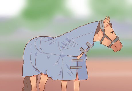 Buy a fly sheet or a winter blanket depending on the season. Horses get cold and are bothered by bugs and the weather just as much as we are. The saying goes, if you're cold, then your horse is cold. A winter blanket will keep your horse warm and comfortable in the winter and will allow it to still go outside and graze in the pasture. A fly sheet is necessary to keep your horse less frustrated in the summer and in places where there are lots of mosquitos, flies, and other bugs. You can order these materials online, or find them at your local tack or specialty horse store.