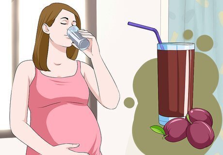 Drink an adequate amount of fluids. Many people know the importance of drinking adequate fluid and constipation prevention. This is also especially important during pregnancy. When you're dehydrated, your body withdraws fluid from your colon, making your stools harder and more difficult to pass. This is a common reason for constipation. When you're pregnant you'll need more fluids each day to help support your growing baby. Most professionals recommend going for 12-13 glasses of water daily. Each glass should be 8 oz. If plain water isn't your thing, try some of these flavorful substitutes: flavored sparkling water, decaf coffee and tea, flavored plain waters, and even low-fat milk (contains about 7 oz of water per 8 oz glass).