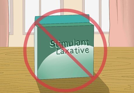 Avoid harmful medications. Although there are many safe methods of treating constipation during pregnancy, there are medications and treatment options that are not safe for you. Avoid stimulant laxatives if you can. These are generally not pleasant regardless of whether you're pregnant, but many doctors do not want their pregnant patients ingesting these types of medications. Also, do not take mineral oils like caster oil to treat constipation. They can prevent the absorption of many vital nutrients in your GI system.