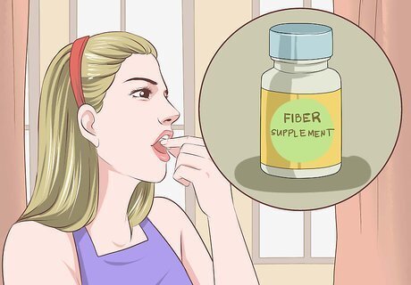 Add in a fiber supplement. In addition to getting fiber from your foods, there are also fiber supplements that you can purchase at your local pharmacy that may help treat your constipation. Many fiber supplements work by adding soft bulk to your stool so it's easier to go. Occasionally there are other supplements that will stimulate your GI system as well to speed up the transit time. Many fiber supplements are sold in powder form that you can sprinkle into beverages to help add in more fiber. There are also supplements that are sold as gummy supplements or in capsule form.