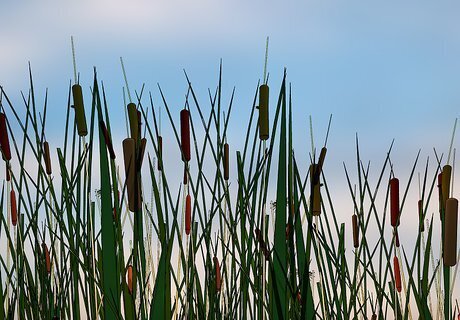 Plant cattails or rushes if you live along a lake or stream. If part of your property abuts a lake or stream, cattails and rushes along the edge of the water will act as a final line of protection for the water. Their roots will suck up any remaining fertilizer and help to prevent shoreline erosion. It’s important to plant other filtering plants in your garden in addition to the plants along the water. Only plant native plants along lakes and streams so you don't accidentally introduce an invasive species.