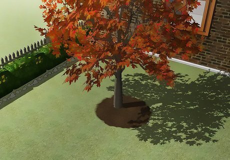 Plant oak or maple trees to soak up fertilizer. Trees with large root systems will soak up water and use any excess fertilizer in the soil. Plant them in the corners of the yard to “catch” water as it runs out of gardens or flowerbeds. You can choose to plant larger, more mature trees, or cultivate the trees from saplings. Both types of plants will utilize the water and fertilizer to continue growing. Be aware when planting that these trees can grow to be very large over time. Plant the trees at least 4 feet (1.2 m) from fences or other structures such as sheds or houses.