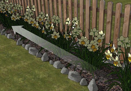 Plant “filtering” native wildflowers. Native wildflowers are great for removing pollution and fertilizer from water, and they don’t require much maintenance after planting. Plant them in strips along the outer edge of your property, where water tends to run when it rains. You can find native wildflower seed mixes at most local nurseries or garden centers.