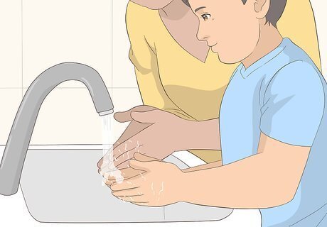 Wash you and your child's hands frequently. Always wash after using the bathroom, sneezing, or coughing. It's also a good idea to wash your hands before cooking. Make sure to wash for at least 20 seconds using soap and warm water. Scrub all parts of your hands well, including under your nails. If you can't wash your hands, use a hand sanitizer instead.