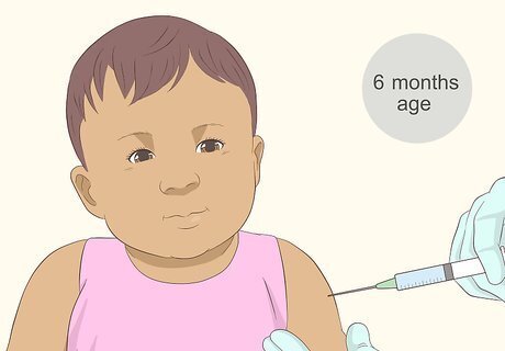 Get your child's first influenza vaccination at 6 months of age. Children can begin getting flu shots annually at this age. However, your child will need to get a shot, as the nasal spray form of the vaccine isn't recommended until your child is 2 years old. You should also avoid getting the nasal spray for your child if there are any pregnant women in the home. The nasal spray contains a weakened form of the live virus, which could pose a danger to anyone who gets exposed to it during pregnancy. For their first flu vaccine, your child will receive 2 shots 4 weeks apart.