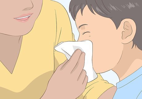 Teach your child to sneeze into a tissue when possible. As often as you can, you and your child should sneeze into a tissue, which helps contain the germs. Then, wash your hands after you throw the tissue away. Of course, you're not always going to have a tissue around. That's when you use your elbow or sleeve.