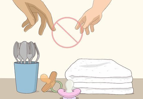 Discourage sharing of pacifiers, food and utensils, toothbrushes, and towels. This rule is especially important when someone is sick. However, as the symptoms of the flu don't always show up right away, it's a good idea to discourage sharing at all, particularly during flu season. For instance, try not to eat or drink after your child or let them eat or drink after you.