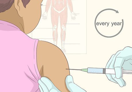 Schedule a flu shot every year with your child's pediatrician. The flu shot needs to be taken every year, preferably in late summer to early fall, whenever the current year's vaccine becomes available. Each year, the makers of the vaccination must take a guess at what strains will be prevalent, which is why it isn't available until this time. Your child can get the nasal spray starting at age 2 instead of the shot. However, there has been some debate about whether it's as effective as the shot at preventing the flu. If at all possible, get the flu shot instead of the nasal spray. The CDC does not claim that the nasal spray is any more or less effective than other forms of the flu vaccine. In the past, the American Academy of Pediatrics has recommended against the nasal spray, but they now state that it is an effective option.