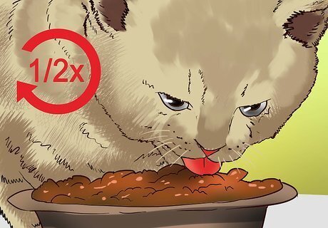Feed your cat twice a day. Cats in general do better with regular feeding times over free feeding. Most cats benefit from two meals a day. You can split the food into two daily meals, one in the morning and one at dinner time.