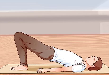 Try out some Kegel exercises. Kegel exercises are a great way to prevent incontinence because they strengthen the muscles of your pelvic floor. Learning how to do them correctly can be a little tricky because you have to isolate your pelvic muscles. Your pelvic muscles are the muscles you use when you try to stop urinating midstream. You will see or feel your testicles rising when you squeeze your pelvic muscles. Once you’ve isolated your pelvic muscles, squeeze them and hold for a count of five and then relax for a count of five. Your goal is to do ten repetitions, three times a day.
