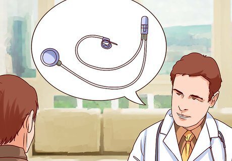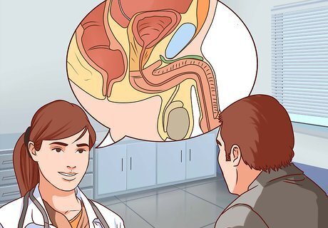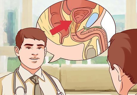 See your doctor. While BPH is one of the most common causes of overflow incontinence, it’s not the only cause. See your doctor and describe your symptoms in order to help him or her determine the correct diagnosis for your specific condition. A tumor in the bladder or prostate can also lead to overflow incontinence, so your doctor will likely perform a screening to rule out these possibilities. Tests will include a prostate-specific antigen (PSA) test of your blood, a digital rectal exam (DTE) to feel for prostate abnormalities, and/or a cystoscopy (a tube inserted into the bladder via the urethra to check for a tumor). If the doctor finds a tumor in any of these instances, he or she will like perform a biopsy to determine whether it is benign or malignant.